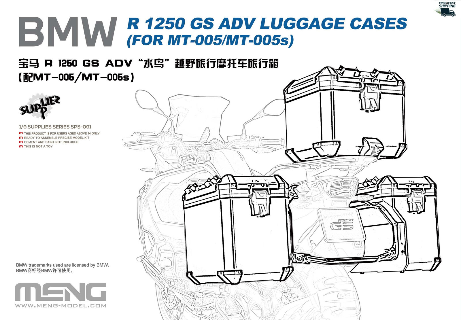 Meng 1/9 BMW R 1250 GS ADV Luggage Cases (FOR MT-005/MT-005s)